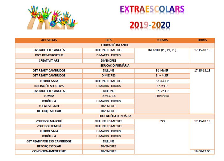 Si voleu baixar-vos tota la informació de les extraescolars del curs 2019-20
